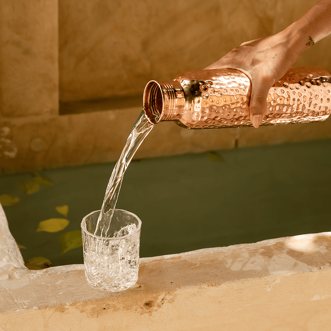 “I’ve been using this copper bottle every day for the past month and it’s quietly become one of my favourite rituals. The weight of the copper feels grounding in my hand, and the warm tone of the metal contrasts beautifully against my morning light—an effortless touch of beauty.”